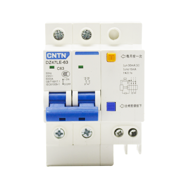 The DZ47LE-63 residual current circuit breaker is suitable for circuits with an alternating current of 50Hz/60Hz, a rated voltage of single-pole two-wire and two-pole at 230V, three-pole four-wire and four-pole at 400V, and a rated current up to 125A. When a person gets an electric shock or the leakage current of the power grid exceeds the specified value, the residual current operated circuit breaker can quickly cut off the faulty power supply within an extremely short time, protecting the safety of people and electrical equipment. At the same time, it can protect the line and the motor from overload or short circuit, and can also be used for the infrequent conversion of the line and the infrequent starting of the motor.